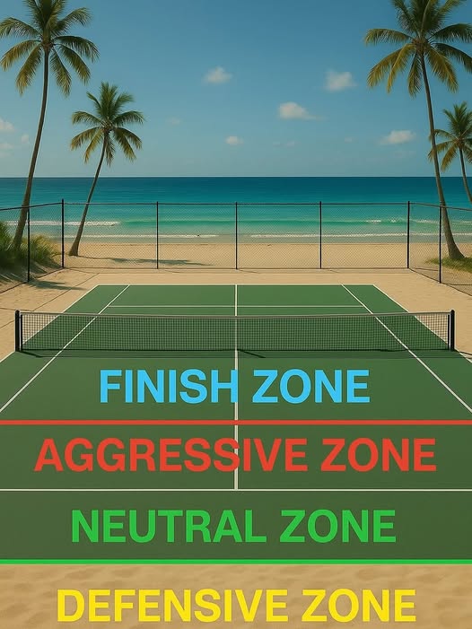 Neutrális zóna: Ez az alapvonaltól számított 1-m-ig terjedő rész. Ezen a részen a labdákat kényelmesen lehet visszatenni a másik oldalra, ha az ellenfél körülbelül hasonló erőt képvisel.